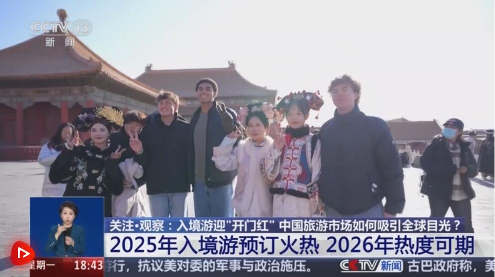 在线旅游平台发布的《2025中国入境游年度报告》显示,2025年前三季度,入境游预订实现了100%的增长,来自免签国家的订单增幅平均高达153%。专家分析,在免签、离境退税等一系列政策红利持续释放下,2026年,入境游热度仍将持续,带动入境游消费继续提升。